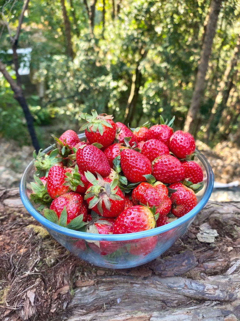 We cultivate strawberries, citrus, stone fruit, walnuts, herbs and vegetables without chemicals. No polyhouses or artificial conditions here - our produce grows in pristine natural environs.
